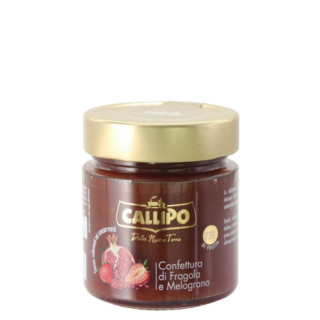 La dolcezza delle fragole incontra la delicatezza della melagrana, frutto ricco di antiossidanti e vitamina C. Questa confettura, preparata con frutta italiana, è ottima da spalmare sul pane per la prima colazione o per la farcitura di crostate, sformati dolci e brioches. Frutta utilizzata: 75g per 100 g, zuccheri totali: 45 g per 100 g – Ingredienti: fragole 45%, zucchero, succo di melagrana 30%, gelificante: pectina da frutta,succo di sambuco, gelificante: farina di semi di carrube, antiossidante: acido ascorbico acidificante: citrato di calcio.